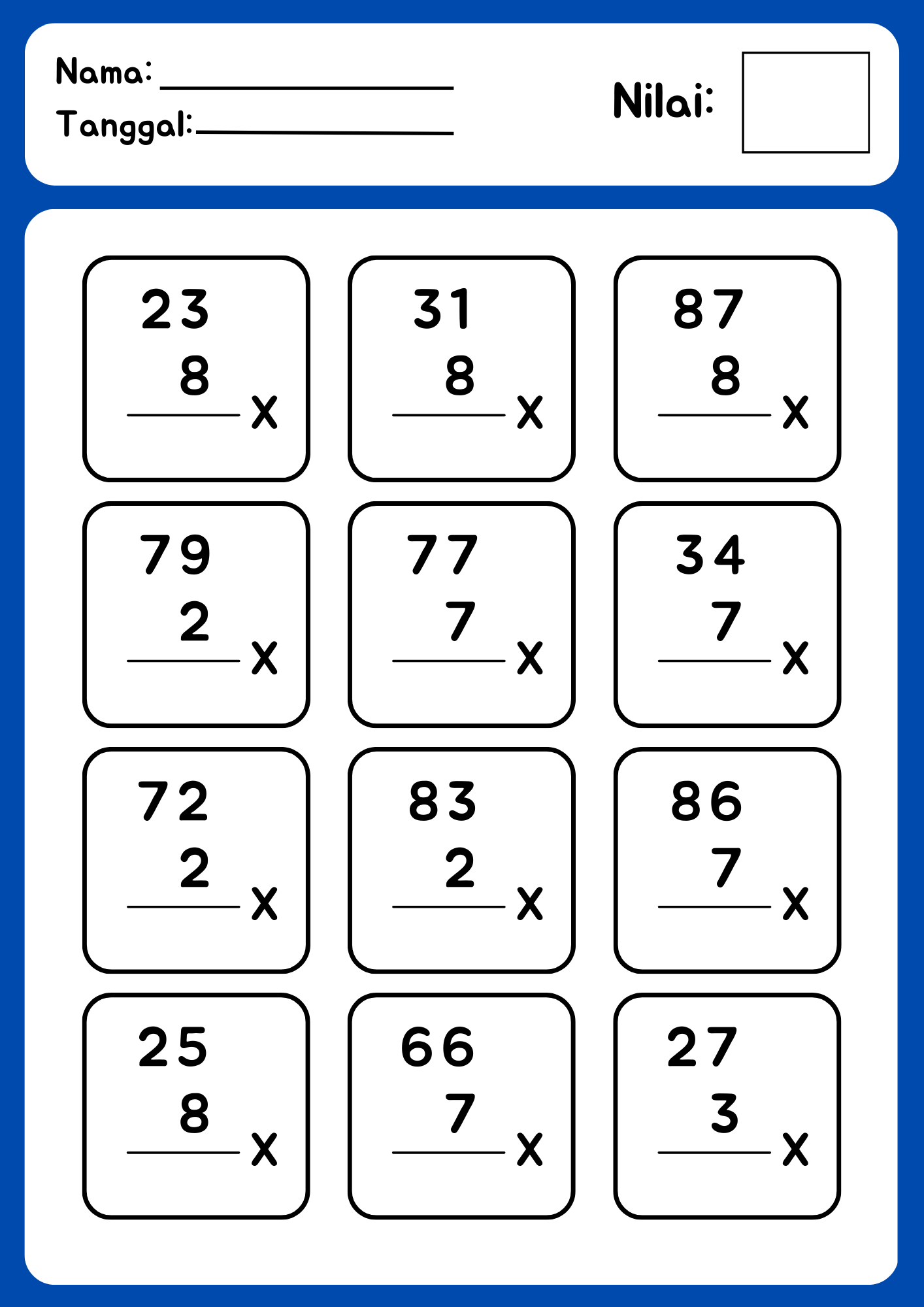 Soal-soal ini membantu siswa memahami konsep dasar perkalian bersusun dengan mudah dan seru!